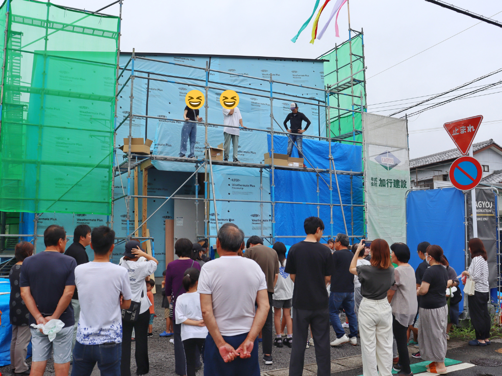 上棟式の後は、餅まきを行いました!